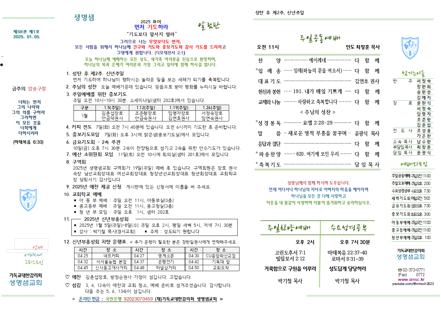 25년 1월 5일 주보 생명샘교회 댓글 0건 조회 659회 작성일 2025-01-05 18:14 가 본문내용 확대/축소 본문 25년 1월 5일 주보25년 1월 5일 주보 25년 1월 첫째주 주보 목록 댓글목록 이전글25년 1월 12일 주보 25.01.13 다음글24년 12월 29일 주보24.12.29