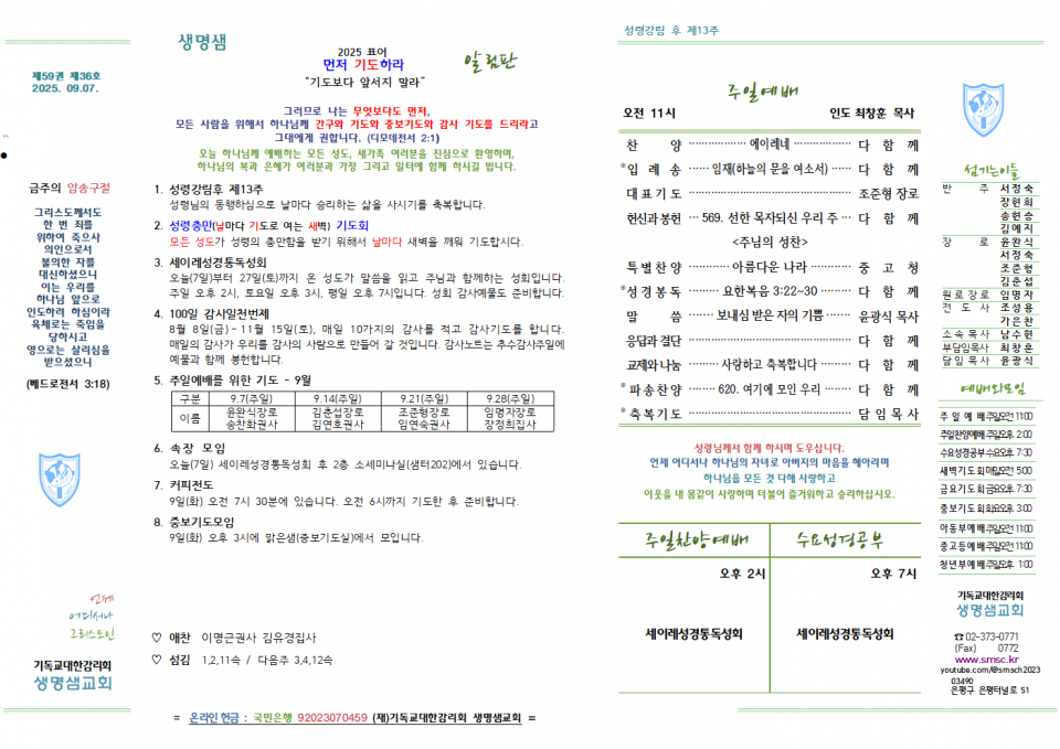 2025년 9월 7일 주보 생명샘교회 댓글 0건 조회 169회 작성일 2025-09-07 21:10 가 본문내용 확대/축소 본문 2025년 9월 7일 주보2025년 9월 7일 주보 9월 첫째주 주보 목록 댓글목록 이전글2025년 9월 14일 주보 25.09.13 다음글2025년 8월 31일 주보25.08.30