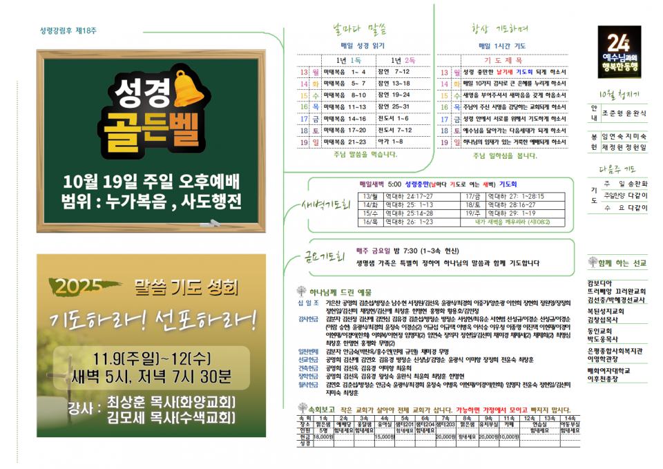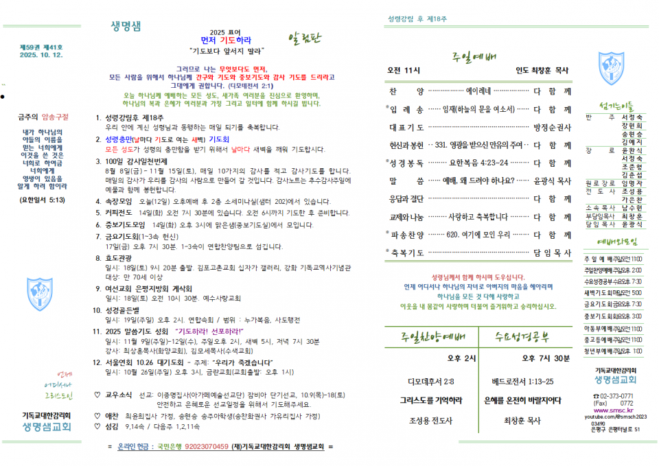 2025년 10월 12일 주보 생명샘교회 댓글 0건 조회 79회 작성일 2025-10-11 16:46 가 본문내용 확대/축소 본문 2025년 10월 12일 주보2025년 10월 12일 주보 10월 둘째주 주보 목록 댓글목록 이전글2025년 10월 19일 주보 25.10.18 다음글2025년 10월 05일 주보25.10.04